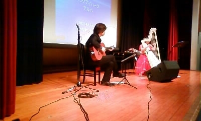 愛知県岩倉市で、アルパのレクチャーコンサートをしてきました。レクチャーなんてたいそうなこと出来るのかなぁと思いつつ、以前愛媛でも行ったワークショックを教訓にしてがんばってきました。大阪からギターの松田氏も、そして名古屋からアルパ仲間の牧野氏も手伝いにきてくれました。段取りばっちりで時間も予定通りにしゃべれて本当によかった